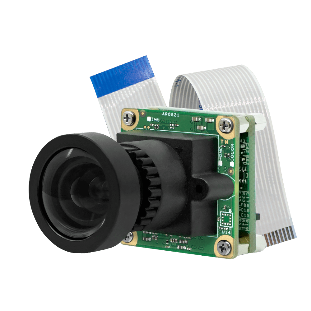 MIPI-CSI2 Sensor onsemi AR0821 8MP 4K Color Rolling Shutter with onboard IMU + ISP + 156 Degree M12 Lens with IR-Cut Filter + RPI 15 Pin Converter and Flex PCB