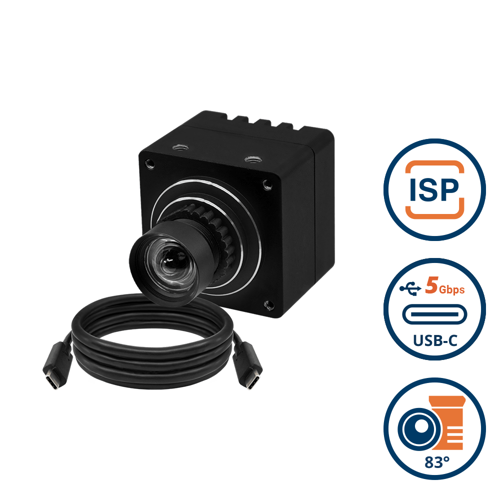 USB3 Type-C PCB Board Level Camera with onsemi AR0235 2MP Full-HD Color Global Shutter with Onboard ISP + 79 Degree M12 Lens with IR-Cut Filter