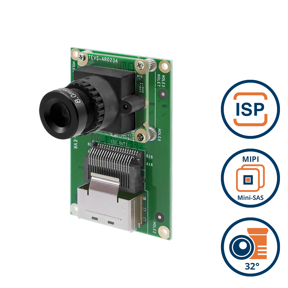 MIPI-CSI2 Sensor onsemi AR0145 1MP Monochrome Global Shutter with onboard IMU + ISP + 78 Degree M12 Lens with IR-Cut Filter + MINI-SAS Cable for NXP i.MX8 EVK