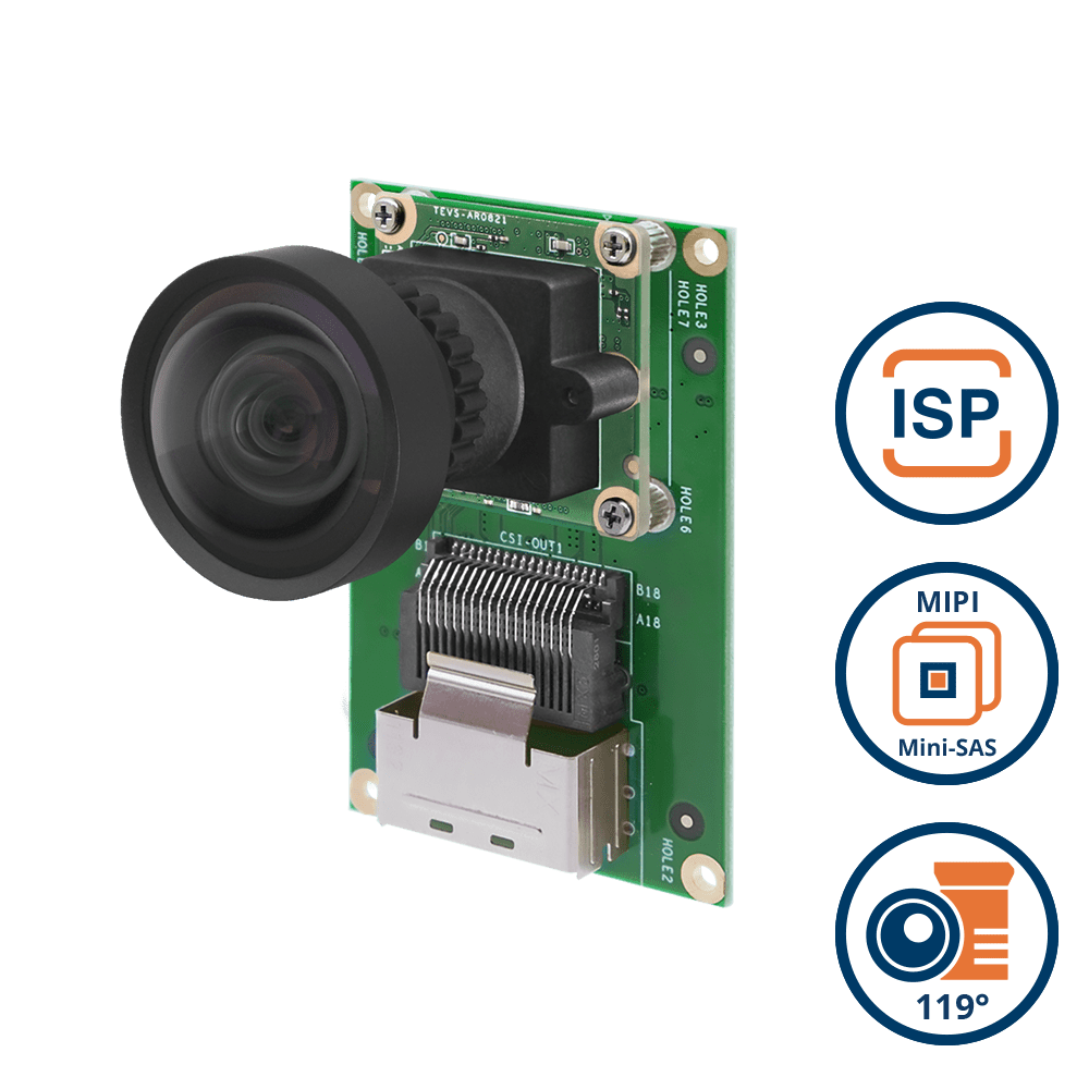 MIPI-CSI2 Sensor onsemi AR0234 2MP Full-HD Color Global Shutter with onboard IMU + ISP + 128 Degree M12 Lens with IR-Cut Filter + MINI-SAS Cable for NXP i.MX8 EVK