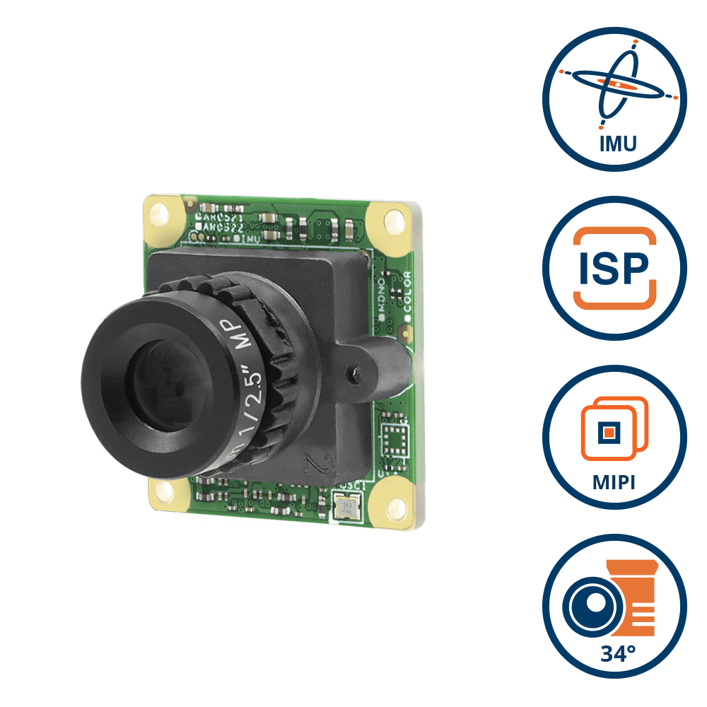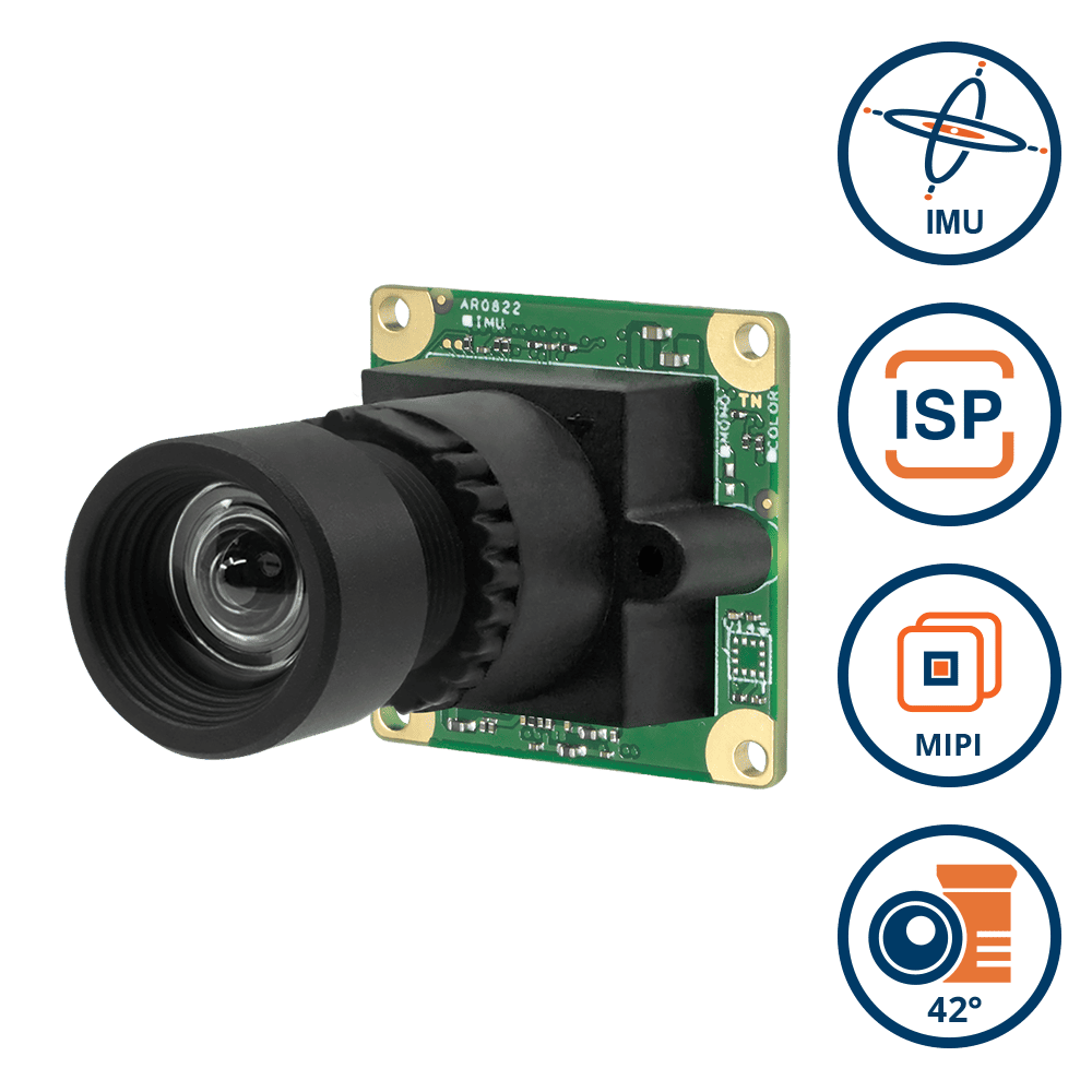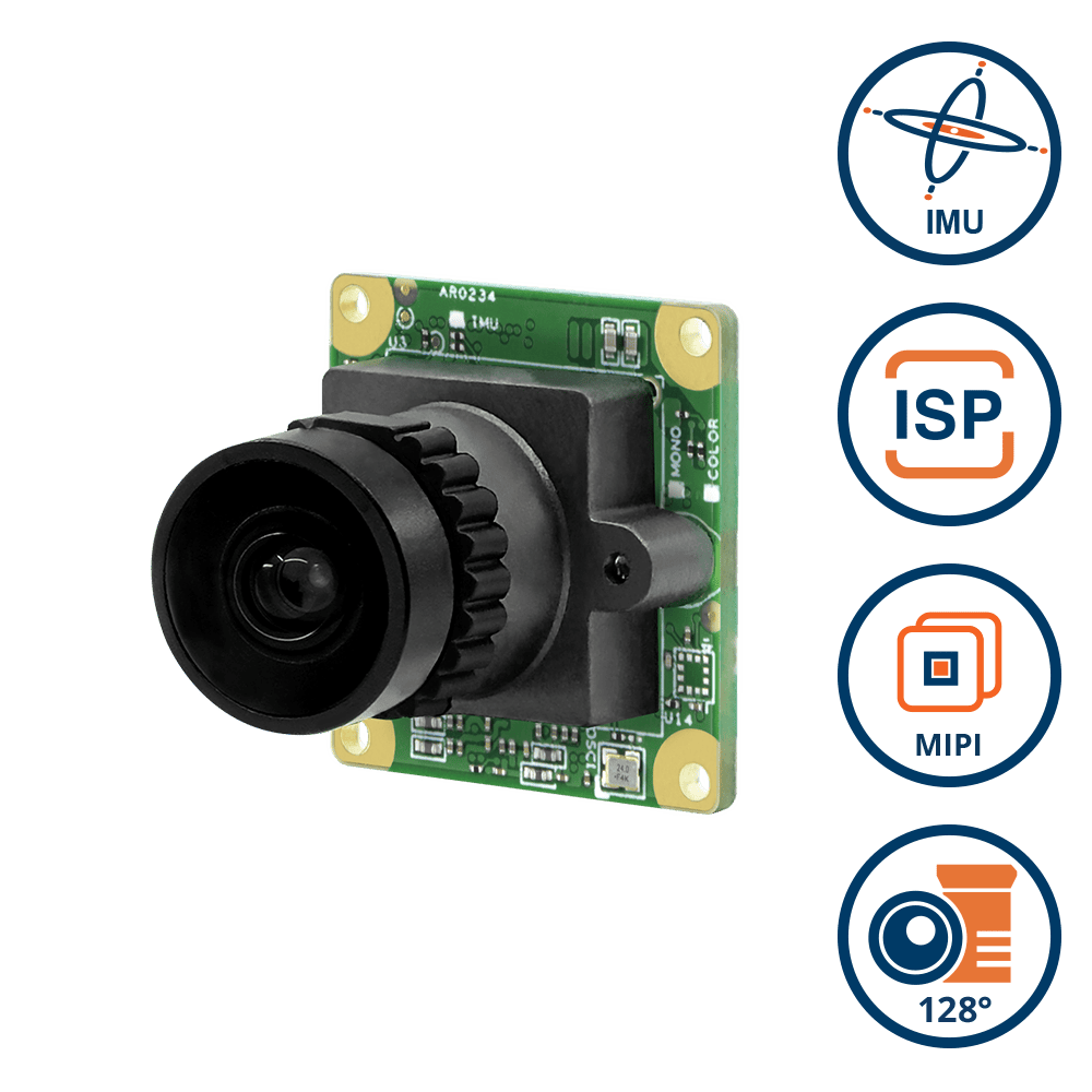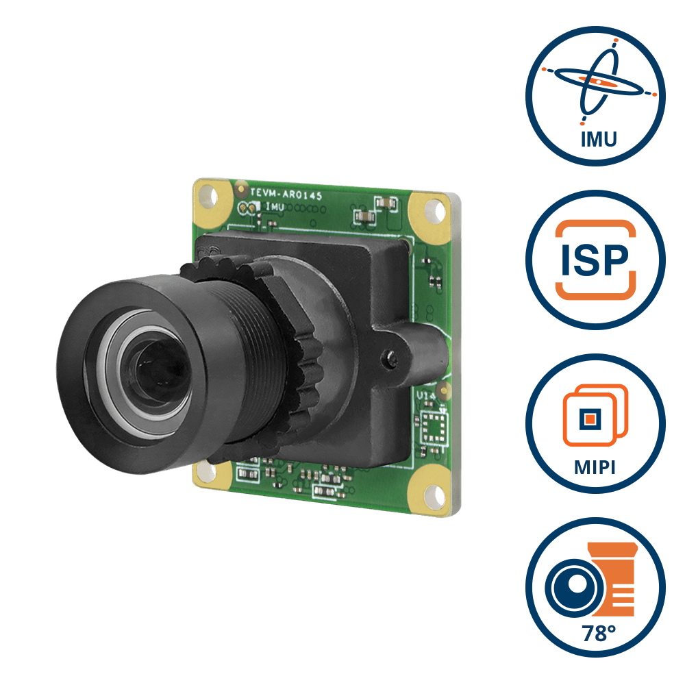 MIPI-CSI2 Sensor onsemi AR0145 1MP Mono Global Shutter with onboard IMU + ISP + 78 Degree M12 Lens with IR-Cut Filter