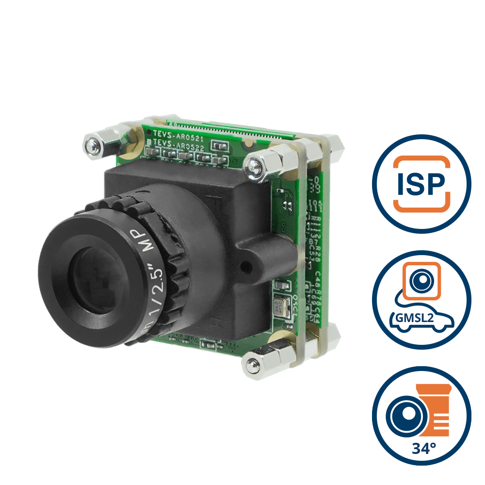 GMSL2 PCB Board Level Camera with onsemi AR0521 5MP Color Rolling Shutter with Onboard ISP + 34 Degree M12 Lens with IR-Cut Filter