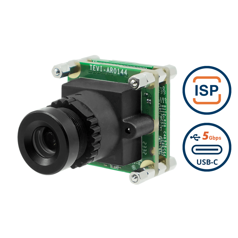 USB3 Type-C PCB Board Level Camera with onsemi AR0522 5MP Mono Rolling Shutter with Onboard ISP + 85 Degree M12 Lens with IR-Cut Filter