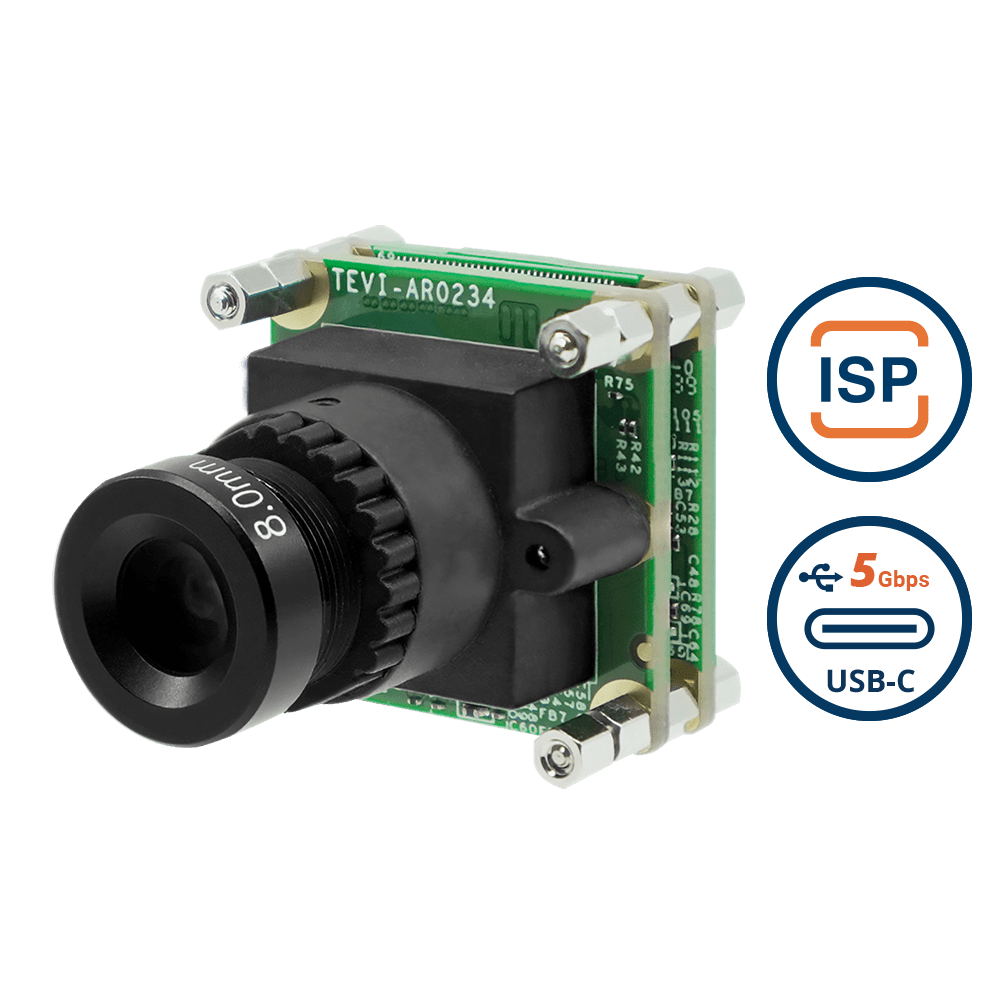 USB3 Type-C PCB Board Level Camera with onsemi AR0822 8MP 4K Color Rolling Shutter with Onboard ISP + 150 Degree M12 Lens with IR-Cut Filter